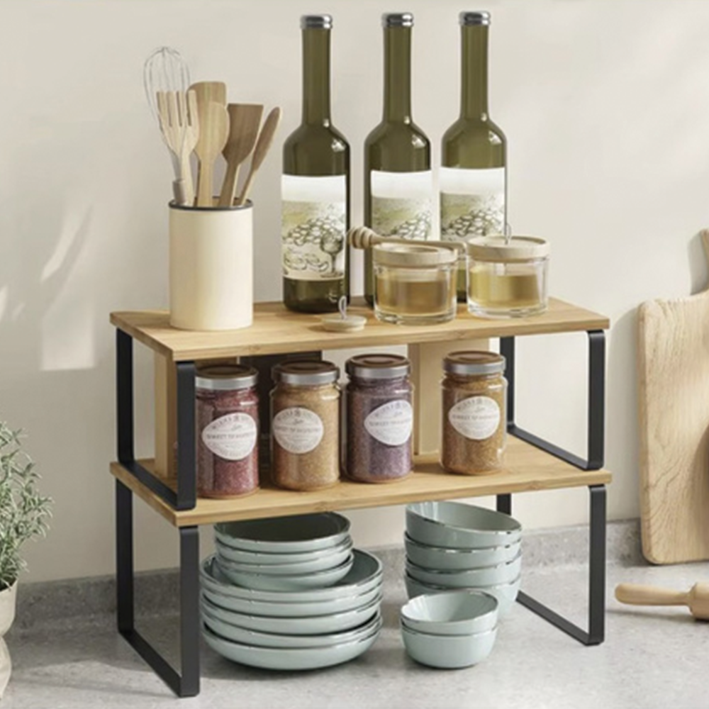 Bambusové kuchyňské police v sadě dvou kusů jsou praktickým a stylovým řešením pro uspořádání koření, bylinek i kuchyňských doplňků přímo na pracovní desce. Kombinace přírodního bambusu a pevné kovové konstrukce zajišťuje vysokou odolnost, dlouhou životnost a moderní vzhled. Police jsou odolné proti vlhkosti, neabsorbují pachy a snadno se udržují v čistotě - ideální doplněk do každé kuchyně.