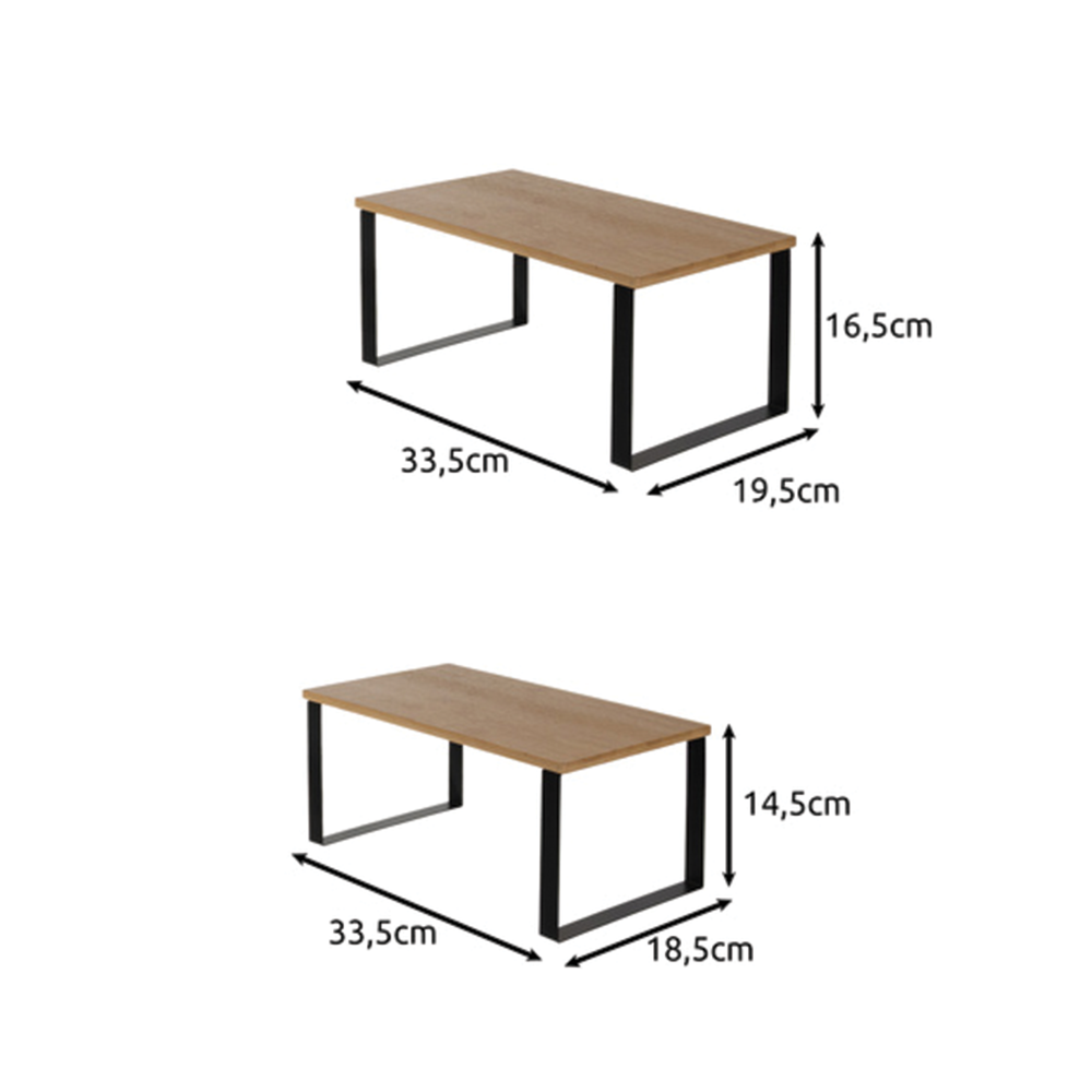 Sada obsahuje dvě police různých výšek, které umožňují přehledné uspořádání koření, sklenic, bylinek nebo kuchyňských doplňků. Díky kompaktním rozměrům nezabírají mnoho místa a zároveň výrazně zvyšují využitelný prostor na kuchyňské lince.
