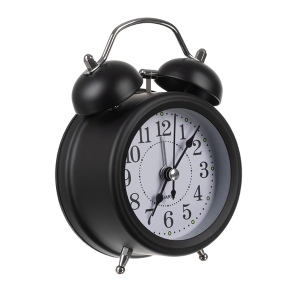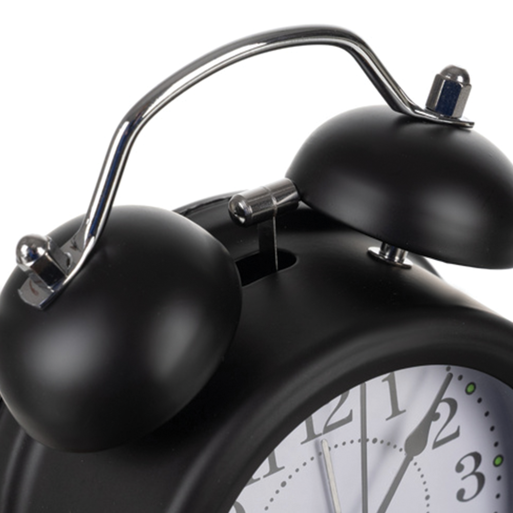 Spolehlivé buzení: Kovové pouzdro a pevné zvonky zajišťují hlasitý a jasný zvuk budíku, který vás probudí včas.