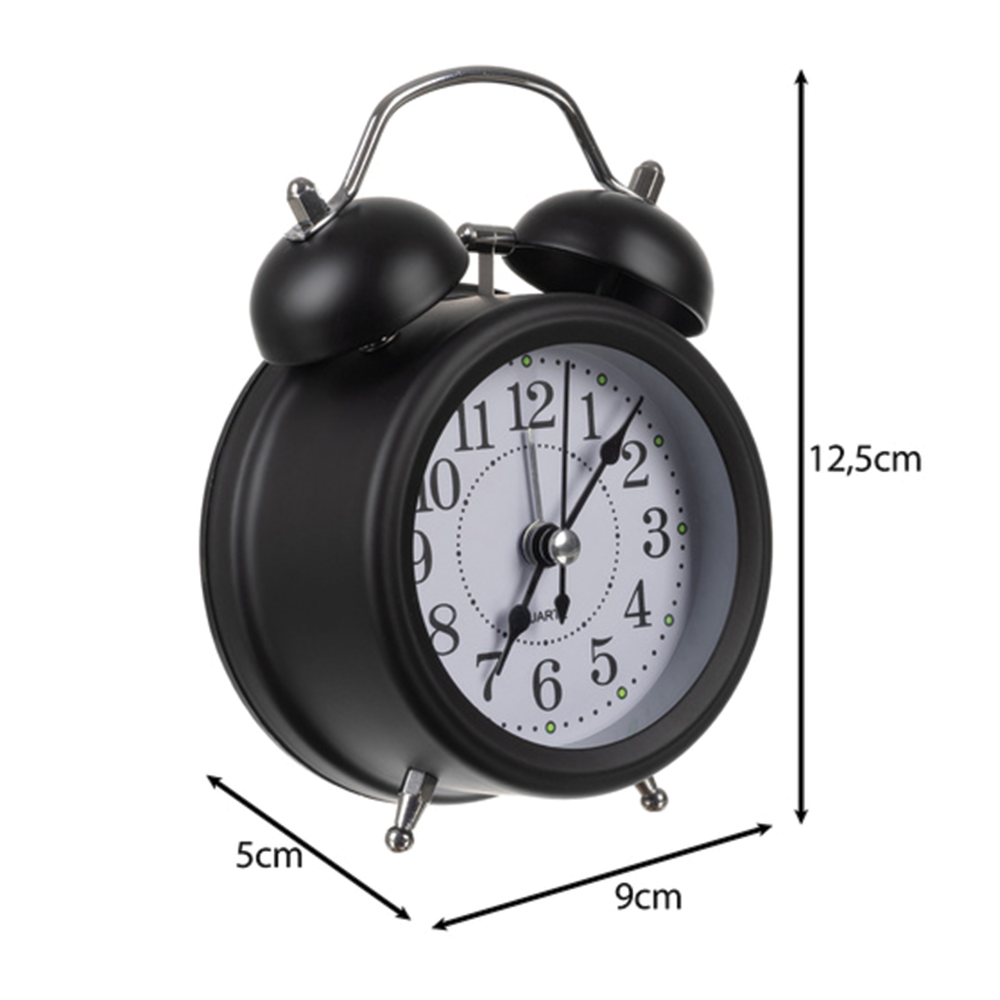 Budík analogový retro s LED podsvícením 12,5×9 cm, černý