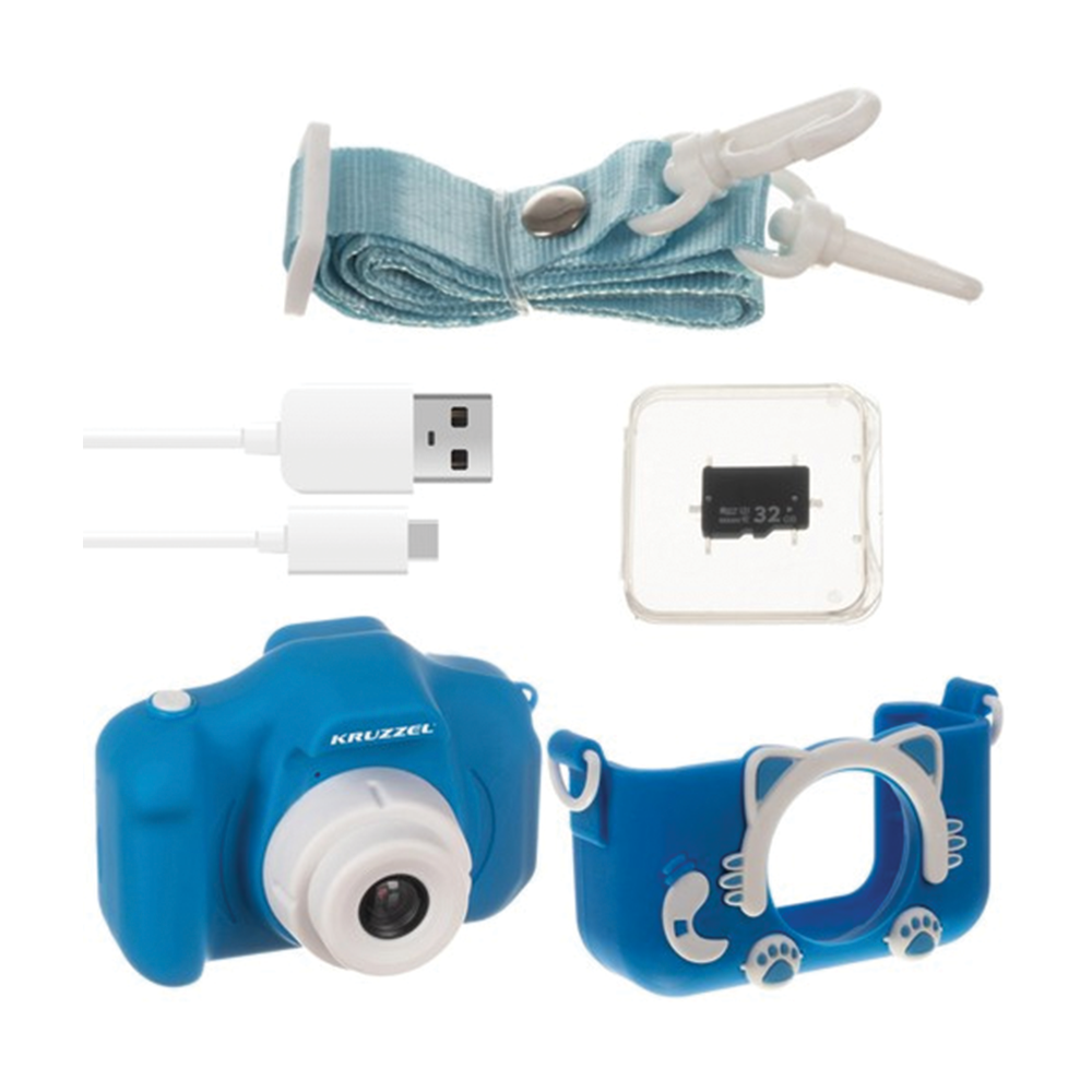 Modrá FULL HD kamera pro děti je multifunkční zařízení, které spojuje zábavu, vzdělávání a kreativitu. Díky svému atraktivnímu designu s překrytím ve tvaru roztomilého kotěte si ji děti okamžitě zamilují. Kamera nabízí šest různých funkcí – režim fotografování, nahrávání videa, přehrávání galerie, nastavení, hry a možnost stahování obsahu.
