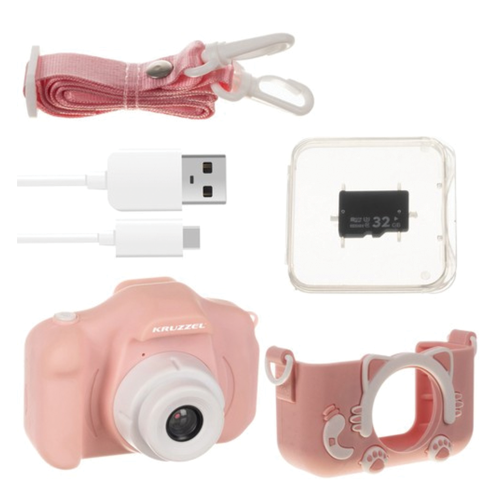 Růžová FULL HD kamera pro děti je multifunkční zařízení, které spojuje zábavu, vzdělávání a kreativitu. Díky svému atraktivnímu designu s překrytím ve tvaru roztomilého kotěte si ji děti okamžitě zamilují. Kamera nabízí šest různých funkcí - režim fotografování, nahrávání videa, přehrávání galerie, nastavení, hry a možnost stahování obsahu. Zařízení dokáže nahrávat i ve Full HD rozlišení a disponuje vestavěným mikrofonem, který věrně zachytí každý zvuk. Sada obsahuje 32GB miniSD kartu, díky které mohou děti pořizovat stovky fotografií a videí. Kamera je navíc vybavena dvěma objektivy - klasickým a selfie - takže umožňuje zachytit každý okamžik z různých úhlů. Na 2palcovém displeji lze fotografie i videa snadno prohlížet, upravovat nebo doplňovat zábavnými rámečky a filtry. Fotoaparát má také funkci automatického vypnutí po 1-3 minutách, což pomáhá šetřit baterii. Děti mohou využít i 5 vestavěných her, které přinášejí další zábavu a rozvíjejí postřeh i logické myšlení. Díky kompaktním rozměrům, lehké konstrukci a gumovému krytu je kamera odolná, snadno se drží a ideálně padne do dětských rukou. Skvělý dárek pro malé fotografy, kteří chtějí objevovat svět prostřednictvím objektivu!