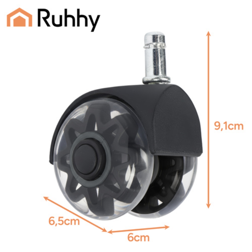 Proměňte svou kancelářskou židli v tichou a hladce se pohybující prémiovou židli, která nepoškrábe podlahy. Sada koleček o průměru 2,5" s pevnými ocelovými ložisky a měkkým PU nášlapem zajišťuje pohodlný pohyb, chrání panely a provozuje se extrémně tiše – pod 25 dB. Standardní vřeteno 11 × 22 mm pasuje na většinu kancelářských a herních židlí a montáž je bez použití nářadí.