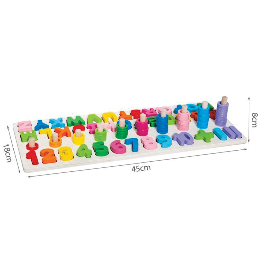 Dřevěná vkládačka s abecedou a čísly je hravá a vzdělávací pomůcka pro malé děti, která spojuje zábavu s učením. Barevná dřevěná deska pomáhá rozvíjet motoriku, logické myšlení i první znalosti písmen a čísel hravou formou. Puzzle je vyrobeno ze dřeva a natřeno netoxickými, zdravotně nezávadnými barvami s hladkým ochranným povrchem pro bezpečné používání.