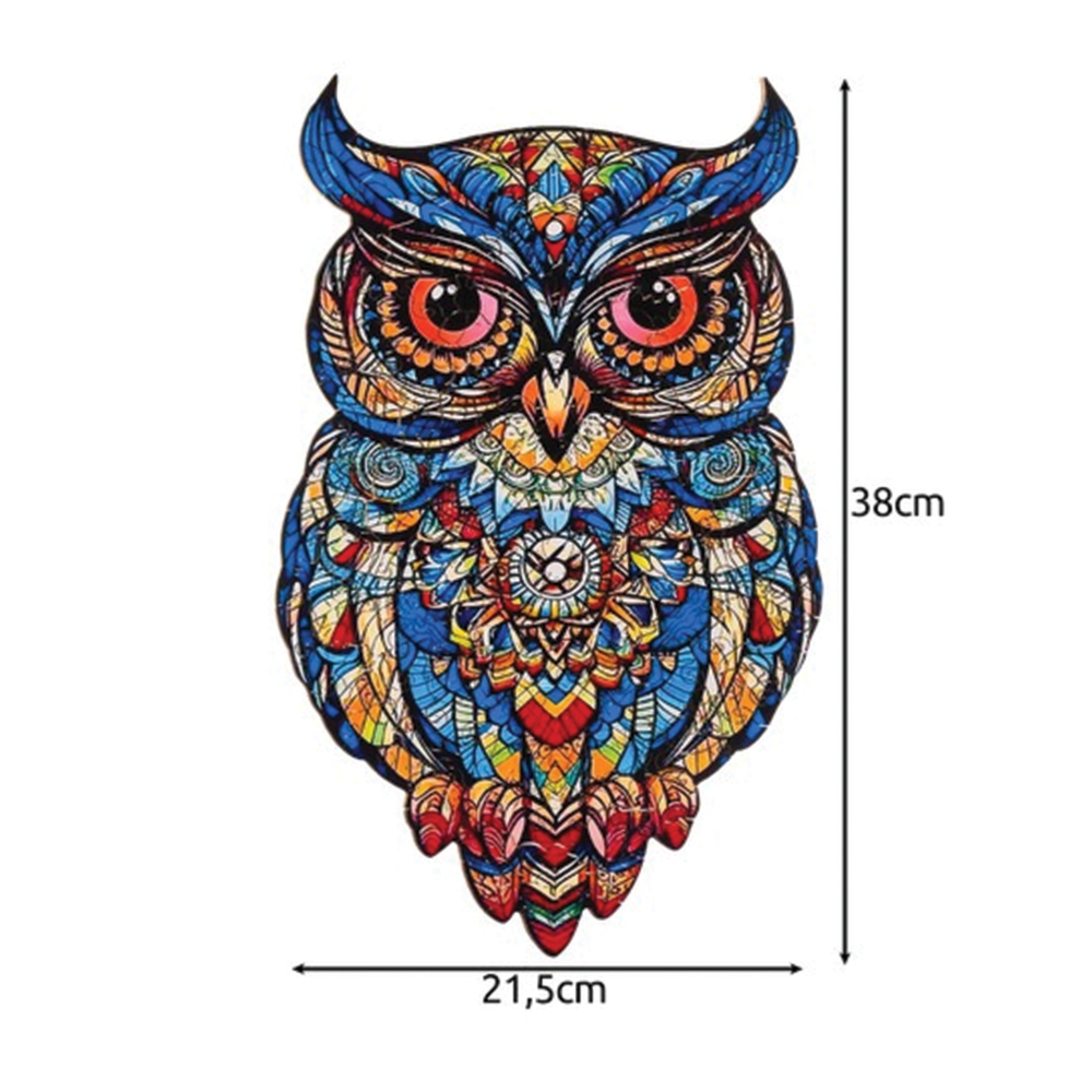 Dřevěné puzzle Sova - 177 dílků představují originální, ekologickou a kreativní zábavu pro děti i dospělé. Každý dílek je laserově přesně vyřezaný z kvalitní dřevěné překližky, což zaručuje precizní spojení a dlouhou životnost celé sady. Puzzle mají hladké hrany, jsou bezpečné na dotek a díky barevnému zpracování vypadají po složení jako skutečné umělecké dílo.