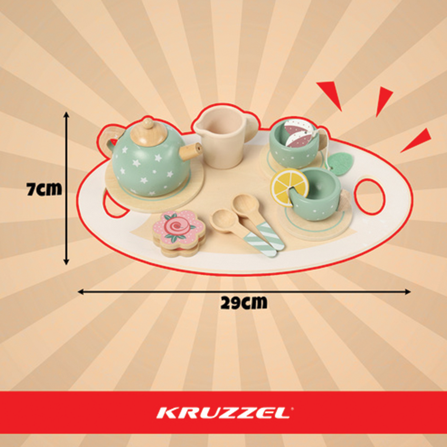 Dřevěný čajový set Kruzzel v 15dílném provedení je krásně zpracovaná dětská souprava, která promění běžné hraní v radostný čajový rituál. Přírodní dřevo, jemné barvy a bohaté příslušenství rozvíjejí fantazii, sociální dovednosti, empatii i jemnou motoriku dítěte. Sada je ideální pro hraní rolí, společnou zábavu se sourozenci a podporu kreativity bez obrazovek.