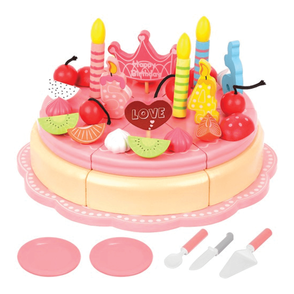 Dřevěný narozeninový dort s kompletní sadou 48 doplňků
