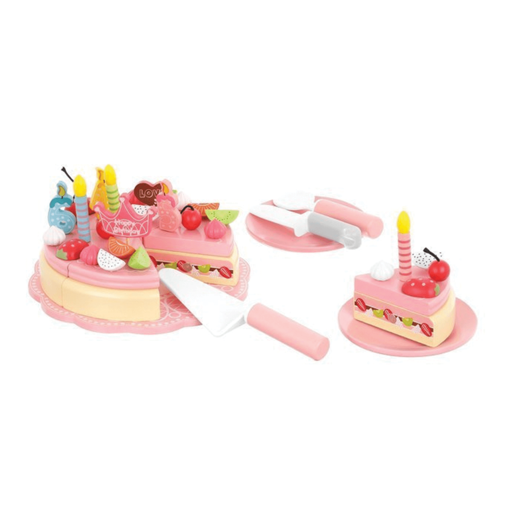 Dřevěný narozeninový dort nabízí dětem možnost uspořádat vlastní oslavu plnou radosti a tvořivosti. Jednotlivé části dortu jsou spojeny magnety, díky kterým je lze snadno rozdělit nožem a znovu spojit. Děti mohou dort ozdobit ovocem, bonbóny, pusinkami i svíčkami a vytvářet pokaždé nový design. Součástí balení jsou také talíře, příbory a další doplňky, které umožňují kompletní „party“ hru. Dřevěné provedení je bezpečné, pevné a příjemné na dotek. Barevné prvky podporují rozvoj představivosti, koordinace rukou i společenských dovedností při hře s kamarády nebo rodinou.