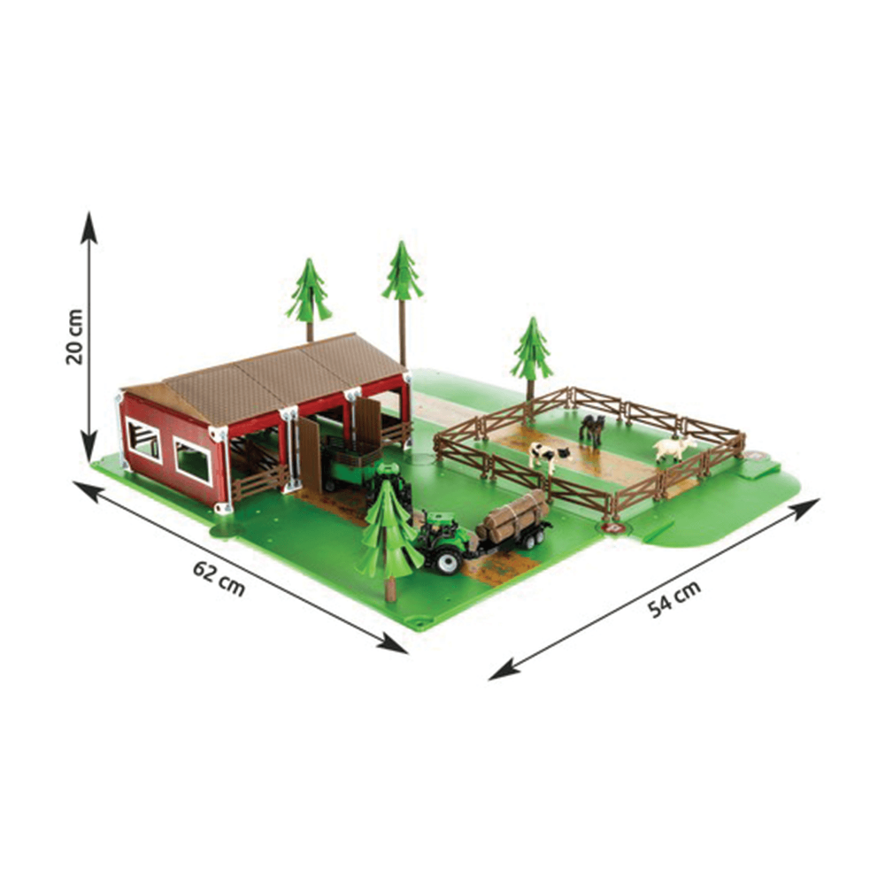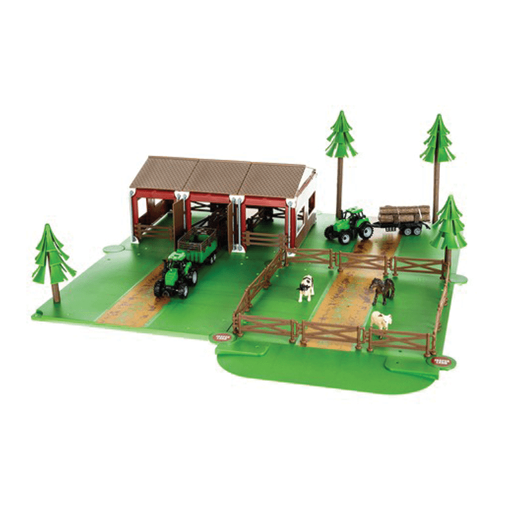 Rozsáhlá farmářská sada se 102 dílky umožňuje dětem sestavit vlastní statek se zvířaty, stromy, stájí a traktory. Hračka je vyrobena z odolného a lehkého plastu, který zvládne i intenzivní dětské hraní. Sada rozvíjí jemnou motoriku, koordinaci oko-ruka a podporuje fantazii při vytváření vlastních farmářských scénářů. Díky barevnému balení je ideální také jako dárek.