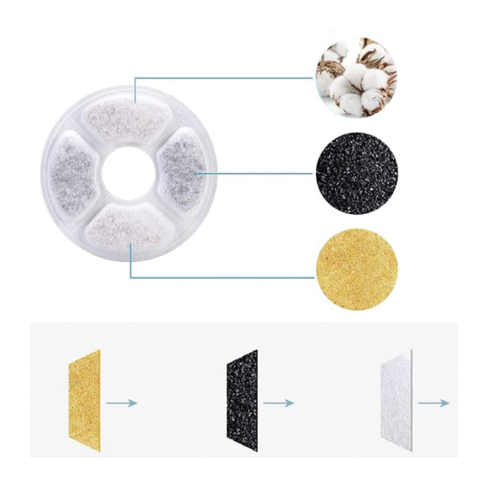Náhradní filtry do fontány či napáječky pro domácí mazlíčky v praktickém balení po 6 kusech zajišťují čistou, svěží a zdravotně nezávadnou vodu každý den. Díky trojité filtrační technologii účinně odstraňují nečistoty, chlór, zbytky krmiva i chlupy a přispívají k lepší chuti vody, kterou budou vaši mazlíčci rádi pít.