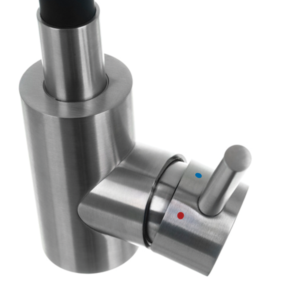 Baterie je vybavena keramickou kartuší, která zajišťuje plynulý chod a dlouhou životnost. Odnímatelný perlátor provzdušňuje proud vody, omezuje tvorbu vodního kamene a přispívá k úspoře vody až o 80 %. Naklápěcí ovládání umožňuje regulaci průtoku vody jednoduchým pohybem. Konstrukce z nerezové oceli a silikonu je odolná, snadno se čistí a je vhodná pro každodenní intenzivní používání.