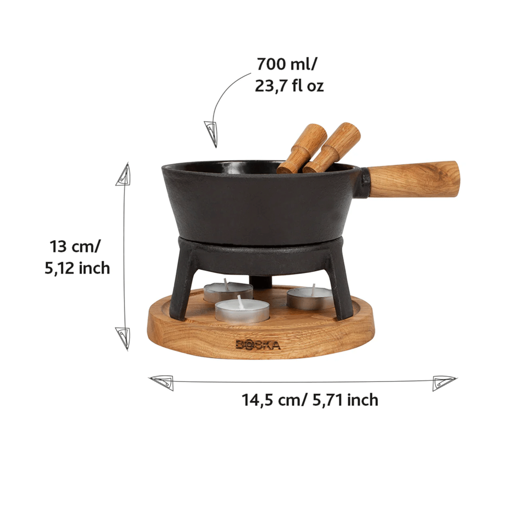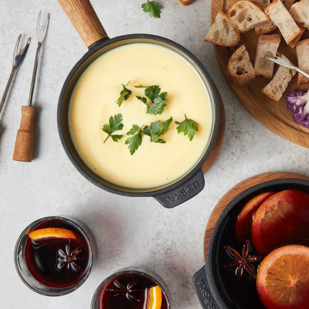 Univerzální využití: vhodné pro tradiční švýcarské sýrové fondue, sladké čokoládové dezerty i masové variace.