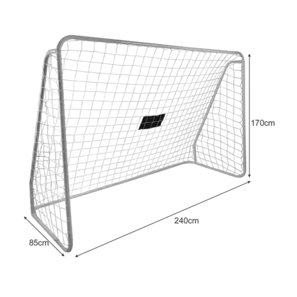 Tato velká kovová fotbalová branka s cílovací plachtou je ideální pomůckou pro trénink přesnosti střelby i zábavnou hru na zahradě či hřišti. Pevná ocelová konstrukce zajišťuje stabilitu a bezpečnost, zatímco zaměřovací podložka s bodovanými otvory motivuje děti i dospělé ke zlepšování fotbalových dovedností. Díky snadné montáži a možnosti upevnění k zemi je vhodná pro každodenní používání.