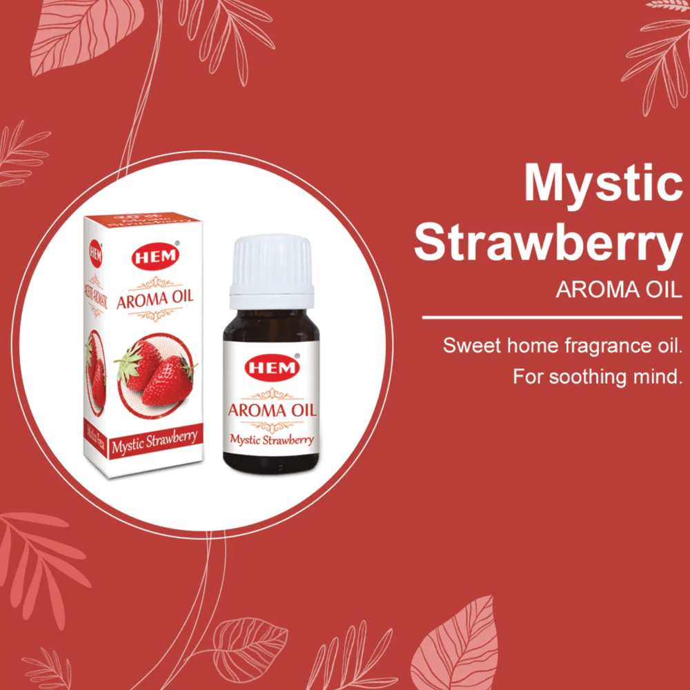 Vonný olej HEM Mystic Strawberry přináší do vašeho prostoru sladkou, šťavnatou vůni zralých jahod, která okamžitě osvěžuje vzduch a navozuje veselou, pozitivní atmosféru. Ovocná aromatická kompozice probouzí smysly, dodává energii a rozjasňuje každý den svou lehkou a hravou náladou. Jemné sladké tóny se postupně rozvíjejí do příjemně svěžího aroma.