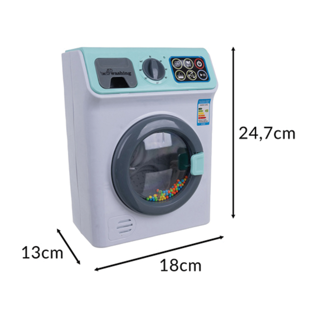Praktický a kompaktní design: Rozměry pračky jsou ideální pro umístění do jakéhokoli dětského pokoje nebo hracího koutku. Díky napájení na baterie není dítě omezeno kabely a může si svou "prádelnu" zřídit kdekoli.