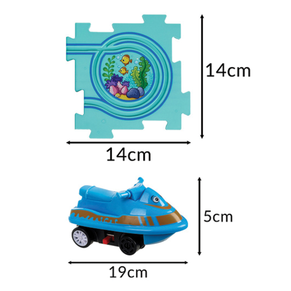 Interaktivní puzzle podmořský svět s dopravními značkami je kreativní vzdělávací sada, která spojuje zábavu, logické myšlení a objevování světa kolem nás. Děti mohou sestavit vlastní silniční dráhu z velkých puzzle dílků, po které se pohybují malá vozidla, a zároveň se naučit rozpoznávat dopravní značky a pravidla silničního provozu. Barevné puzzle s podmořským motivem podporují rozvoj koordinace, trpělivosti, prostorového vnímání i kreativity. Díky bezpečným, zaobleným hranám a velkým dílkům je hra vhodná pro děti již od 3 let. Vozidla jsou poháněna bateriemi a samostatně se pohybují po dráze, což dává dětem pocit skutečné interaktivní hry.