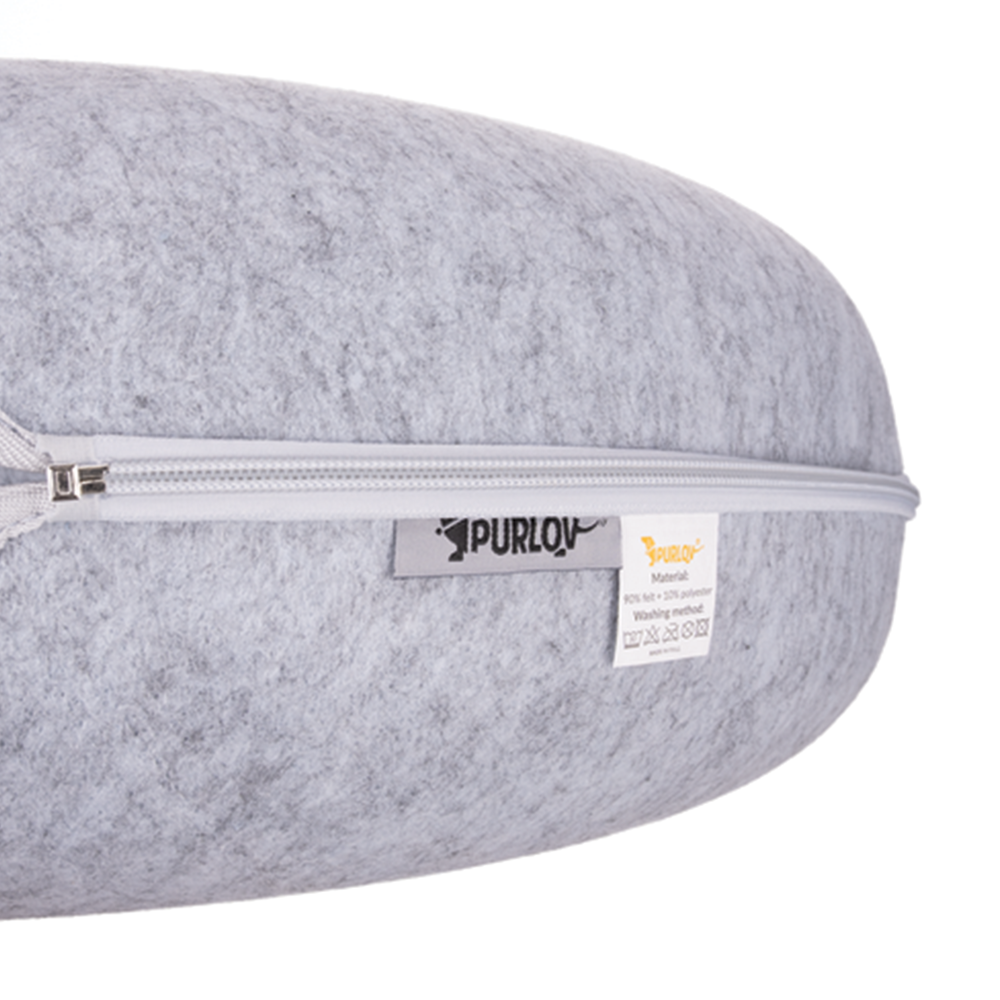 Prvotřídní materiály a odolnost: Pelíšek je vyroben z kvalitní kombinace přírodní plsti a odolného polyesteru. Tento materiál skvěle drží tvar, odolává kočičím drápkům a zároveň je velmi příjemný na dotek. Robustní nerezový zip zajišťuje pevné spojení obou částí, takže pelíšek zůstává stabilní i při divočejším skotačení.
