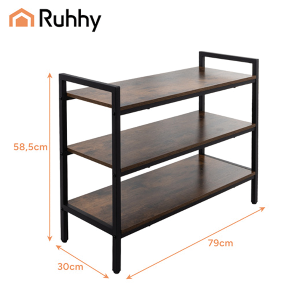 Kovový botník Ruhhy se 3 dřevěnými policemi je elegantní a odolný kus nábytku, který spojuje funkčnost, styl a kvalitu v jednom. Robustní ocelový rám a dřevěné police v teplém odstínu tvoří harmonickou kombinaci v moderním loftovém designu. Díky své kapacitě pojme obuv i doplňky celé rodiny a díky kompaktním rozměrům se vejde i do menší předsíně nebo chodby.