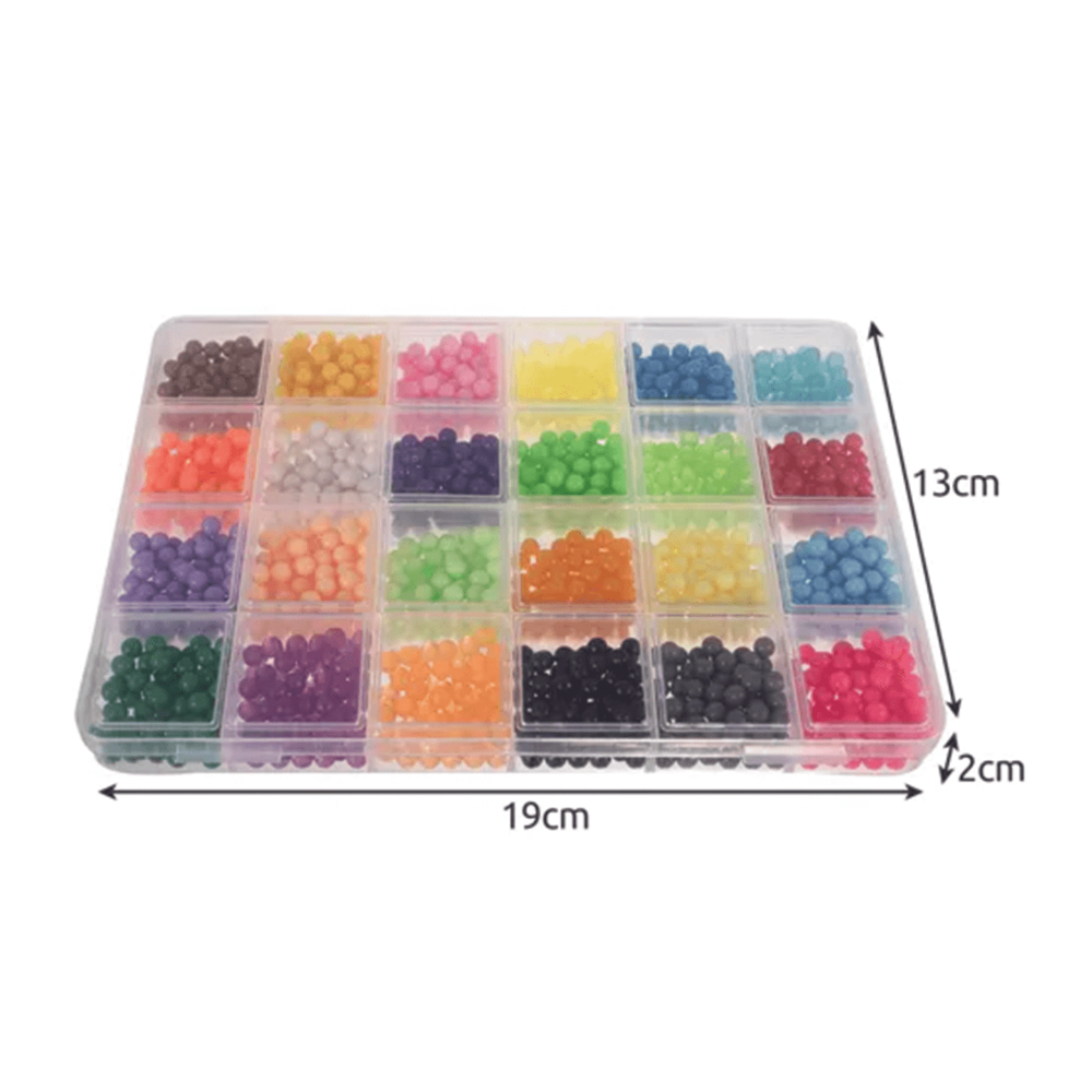 Kreativní sada s vodními korálky nabízí nekonečné možnosti tvoření pro děti od 3 let. Obsahuje 2 800 korálků ve 24 různých barvách, díky kterým lze vytvářet barevné obrázky, zvířátka, postavičky i prostorové 3D tvary. Součástí balení jsou dvě šablony (čtvercová a šestiúhelníková) a vzorové předlohy, které pomohou dětem s prvními výtvory nebo poslouží jako inspirace.