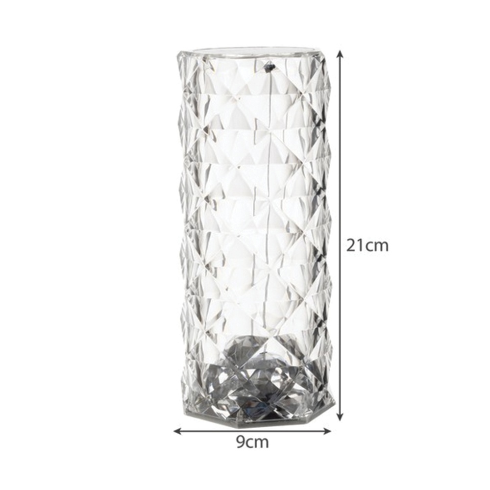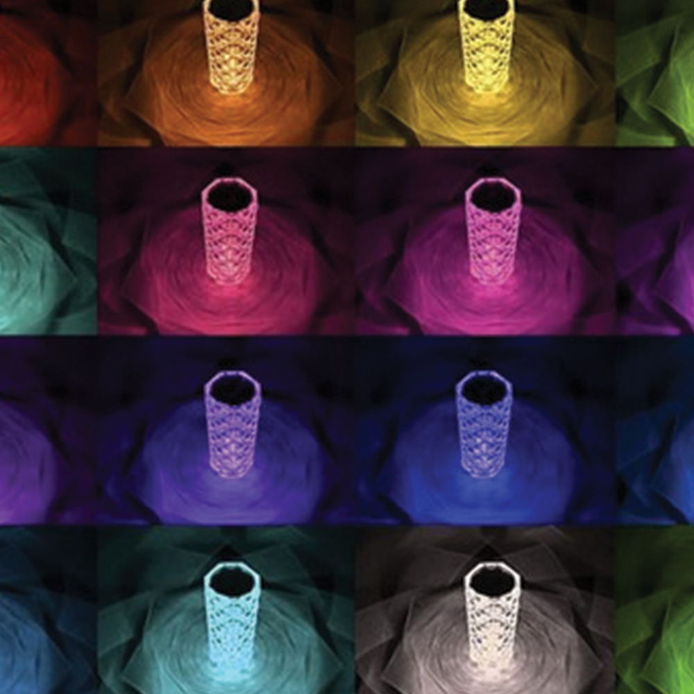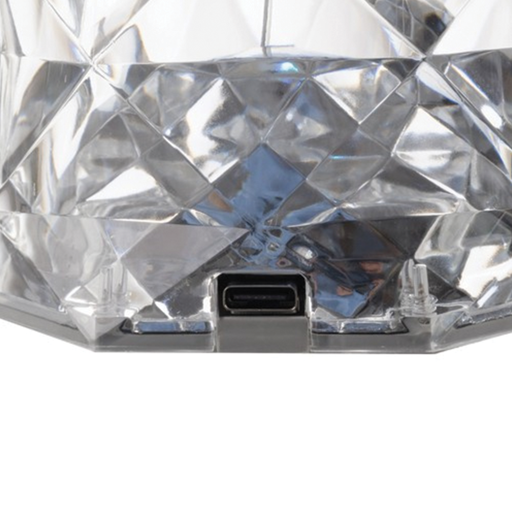 Křišťálová LED lampa vyniká moderním designem z čirého akrylu, který krásně rozptyluje světlo a vytváří unikátní projekci růžového vzoru na stole, stěně nebo podlaze. Po rozsvícení se světlo láme v křišťálové struktuře a vytváří dekorativní efekt, jenž okamžitě zaujme a navodí příjemnou atmosféru. Lampu lze ovládat dvěma způsoby – dotykem na horním panelu nebo pomocí přiloženého dálkového ovladače. Díky tomu můžete pohodlně měnit barvy, intenzitu světla i režimy svícení z jakéhokoli místa v místnosti. K dispozici je 16 barevných odstínů, 5 úrovní jasu a funkce plynulého přechodu nebo přeskakování barev, což umožňuje přizpůsobit osvětlení podle nálady či příležitosti. Vestavěná lithiová baterie s kapacitou 400 mAh umožňuje používat lampu bez neustálého připojení k napájení. Po plném nabití vydrží svítit až 4 hodiny a lze ji používat i během nabíjení přes USB kabel. To z ní dělá ideální dekorativní lampu na noční stolek, pracovní stůl, do obývacího pokoje nebo jako stylové osvětlení na večírky a romantické večery. Kompaktní rozměry a nízká hmotnost zajišťují snadnou přenositelnost a univerzální využití v různých prostorech. Lampa spojuje moderní vzhled, funkčnost a působivý světelný efekt v jednom elegantním doplňku.