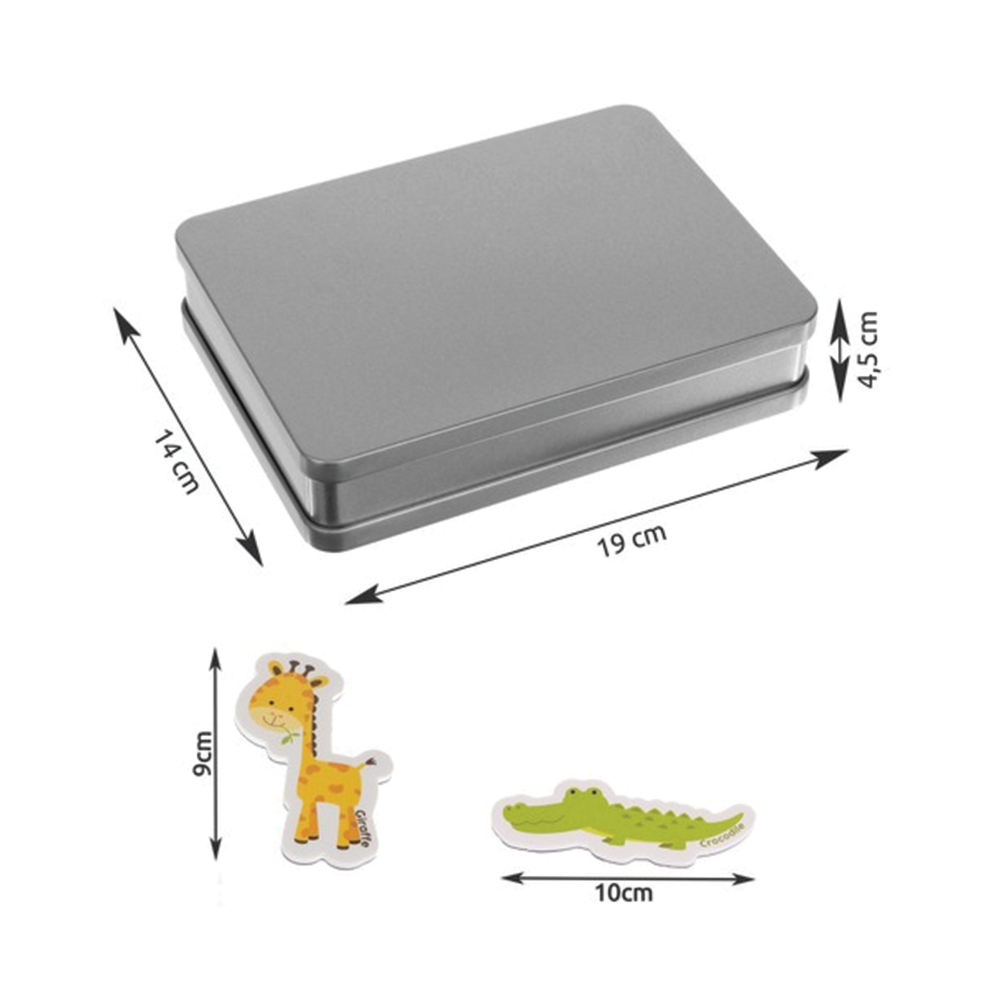 Praktické a odolné kovové pouzdro: Celá sada je uložena v elegantní kovové krabičce, která slouží k přehlednému ukládání a chrání magnety před ztrátou nebo poškozením. Díky tomu je sada ideální i na cesty, kdy se děti mohou zabavit například v autě nebo v čekárně u lékaře.