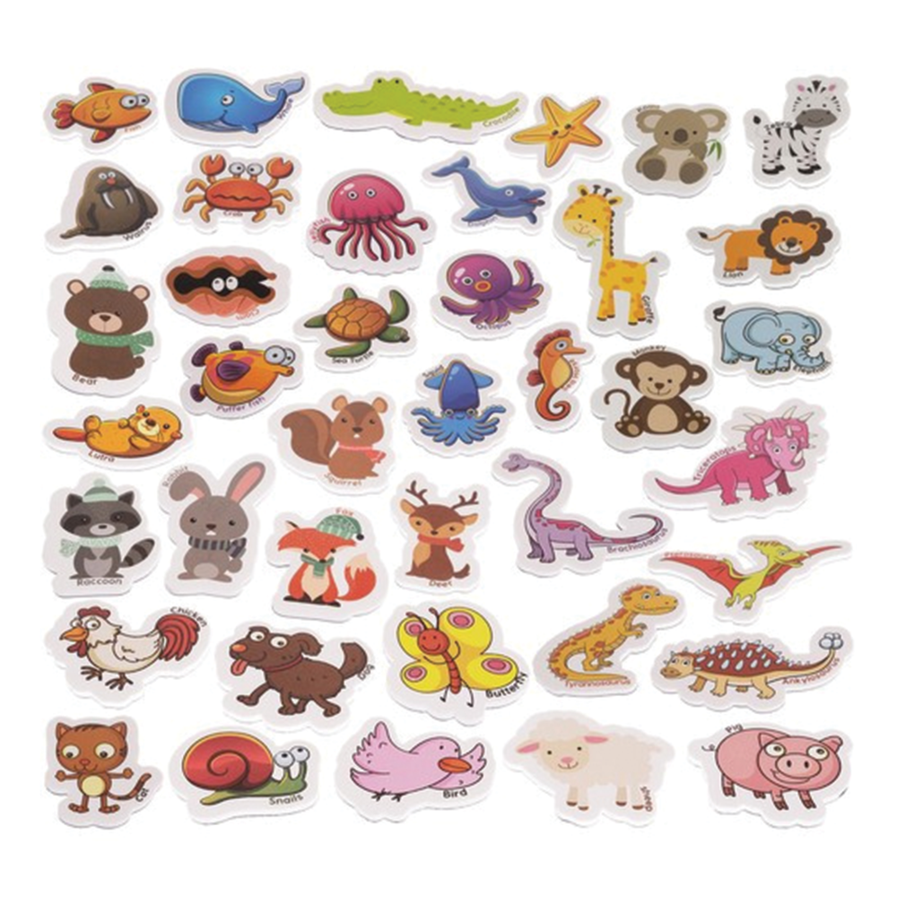 Bohatá kolekce zvířecích motivů: Sada obsahuje 40 unikátních magnetů, z nichž každý zobrazuje jiné zvířátko v pestrých barvách. Tato rozmanitost okamžitě upoutá dětskou pozornost a promění obyčejnou plochu lednice nebo magnetické tabule v pestrou zoologickou zahradu plnou příběhů.