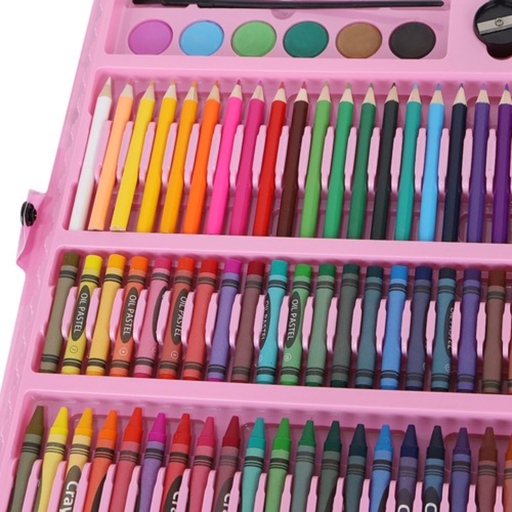Otevřete bránu do světa fantazie s touto obří malířskou sadou v praktickém růžovém kufříku. Celkem 168 dílků, od pastelek a fixů až po olejové pastely a akvarelové barvy, nabízí nekonečné možnosti pro tvoření doma i ve škole. Díky přehlednému uspořádání v odolném kufru s rukojetí bude mít váš malý umělec své potřeby vždy uklizené a připravené k okamžitému použití, ať už se vydá kamkoliv.