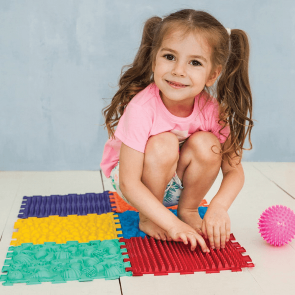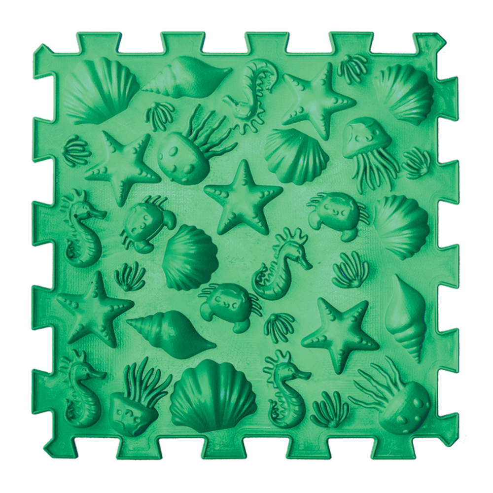 Tato kompaktní masážní podložka s námořním motivem obsahuje 6 puzzle modulů pro efektivní procvičení chodidel dětí i dospělých. Mix různých struktur stimuluje reflexní zóny, posiluje klenbu a pomáhá v prevenci plochých nohou i únavy po dlouhém stání. Vyrobeno z bezpečného hypoalergenního PVC, které je odolné a snadno omyvatelné. Ideální pro první krůčky, domácí rehabilitaci i trénink zvířat.