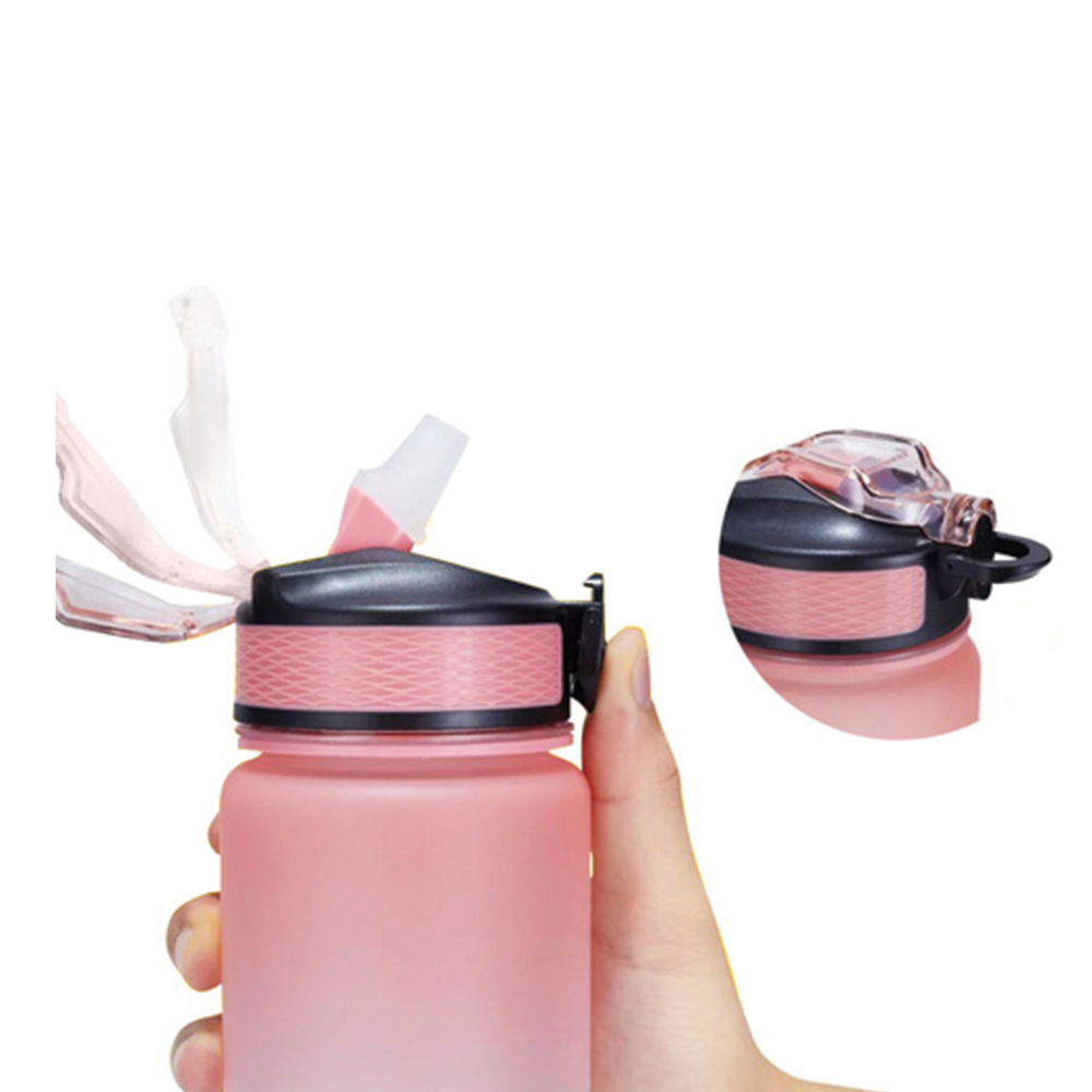 Motivační a přehledná stupnice: Láhev obsahuje měrku v mililitrech (až 1000 ml) i uncích (32 oz) a hodinovou stupnici od rána do večera. Motivační slogany pomáhají dodržovat pravidelný pitný režim.