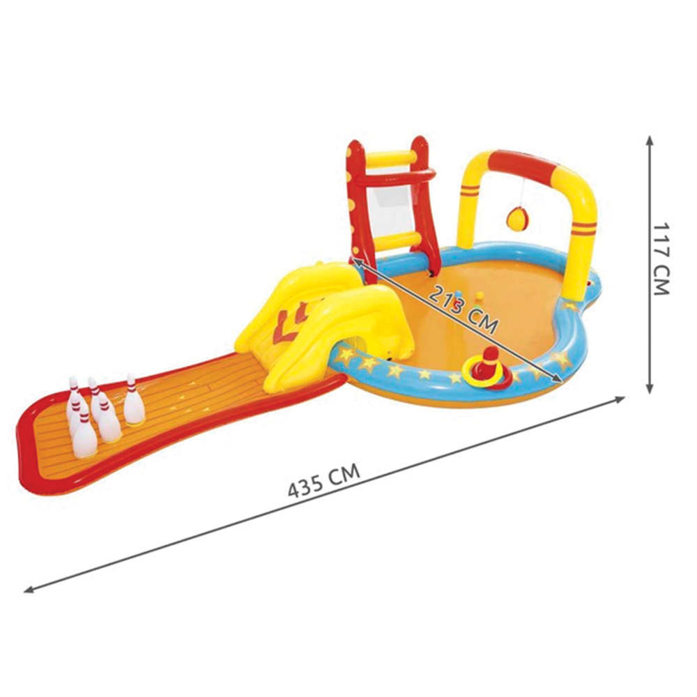 Nafukovací vodní hřiště 435x213 cm představuje fantastický způsob, jak zabavit děti a jejich kamarády přímo na vaší zahradě. Toto velkoryse řešené centrum s objemem 314 litrů je ideálním řešením pro aktivní pohyb i příjemné zchlazení během teplých letních dnů. Sada obsahuje celou řadu zábavných prvků, jako je odnímatelná skluzavka, nafukovací koš s míčem, kuželky pro vodní bowling a házecí kroužky. Speciální koule na stříkání vody zajistí dětem neustálý přísun osvěžující zábavy a promění obyčejné koupání v dobrodružnou výpravu.