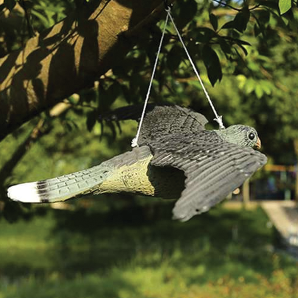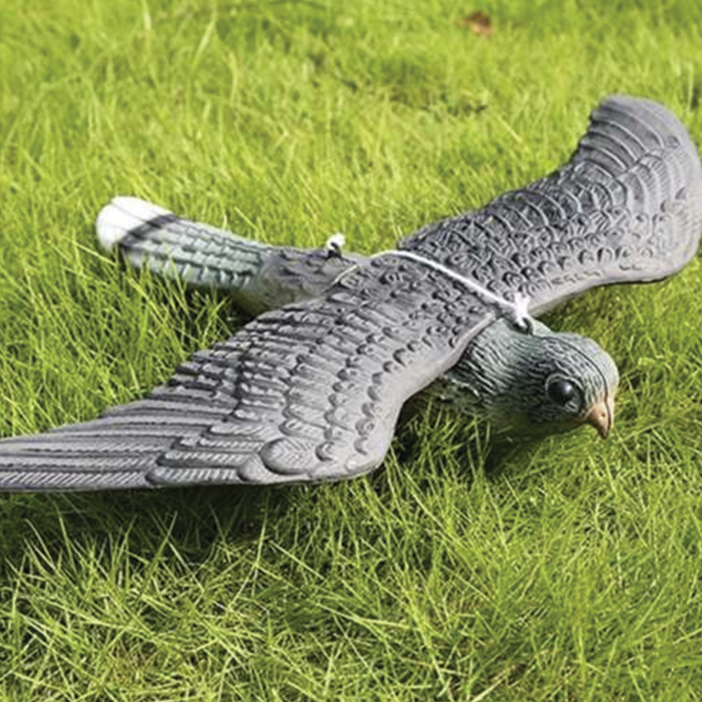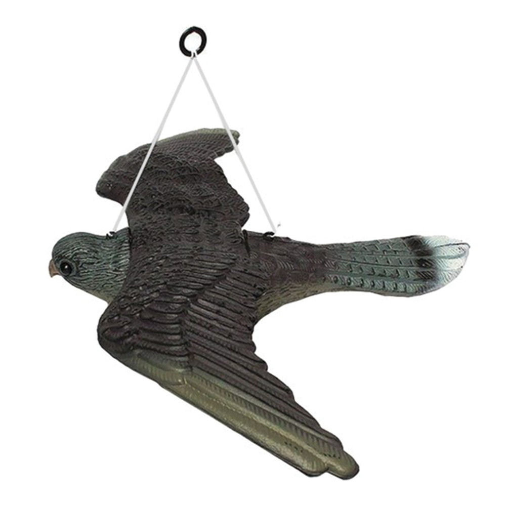 Odpuzovač ptáků ve tvaru sokola věrně napodobuje skutečného dravce - od tvaru křídel přes strukturu peří až po výrazné zbarvení. Právě realistický vzhled vyvolává u menších ptáků přirozený strach a nutí je vyhýbat se chráněnému místu. Díky velkým rozměrům působí sokol dominantně a viditelně i z větší vzdálenosti, což výrazně zvyšuje jeho účinnost. Součástí balení je šňůrka s kroužkem, která umožňuje snadné zavěšení například na balkon, pergolu, strom nebo okap. Pohyb ve větru imituje let a přirozené chování dravce. Odpuzovač je vyroben z lehkého, ale odolného materiálu a nemá žádné ostré hrany - je tedy bezpečný pro děti i zvířata. Kromě ochranné funkce může sloužit i jako zajímavý dekorativní prvek.