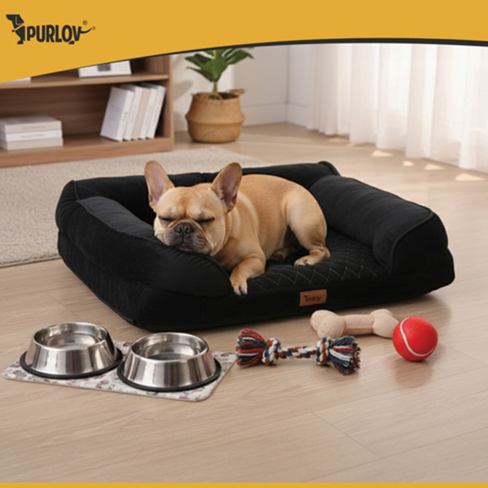 Dopřejte svému psovi regenerační spánek v tomto ortopedickém pelíšku, který díky 6cm vrstvě pěny ulevuje kloubům a páteři. Elegantní černý design se zlatým prošíváním skvěle doplní interiér, zatímco protiskluzové dno zajistí stabilitu na každém povrchu. Snímatelný potah na zip usnadňuje údržbu a měkký povrch poskytuje maximální pohodlí štěňatům i starším psům.