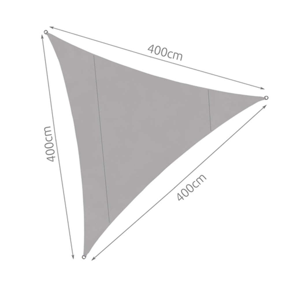 Tato trojúhelníková sluneční plachta o rozměrech 4 × 4 × 4 m je vyrobena z kvalitního polyesteru s vysokou hustotou vláken, které účinně blokují sluneční záření a snižují teplotu pod plachtou. Zajišťuje příjemný stín, zároveň umožňuje cirkulaci vzduchu a vytváří komfortní prostředí během horkých letních dnů. Ideální řešení pro zahradu, terasu, balkon i kempování.