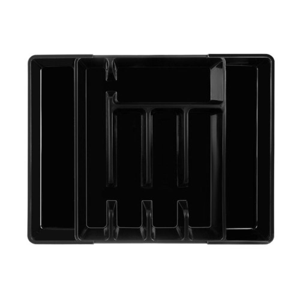 Oboustranně nastavitelný organizér do kuchyňských zásuvek nabízí 5 - 7 přihrádek pro příbory a kuchyňské náčiní. Výsuvný mechanismus se přizpůsobí zásuvkám o šířce 28 - 45 cm, pevný materiál PP je odolný proti poškrábání a vlhkosti a snadno se čistí. Elegantní černý design dokonale ladí do každé kuchyně a zajišťuje přehledný a uspořádaný prostor.