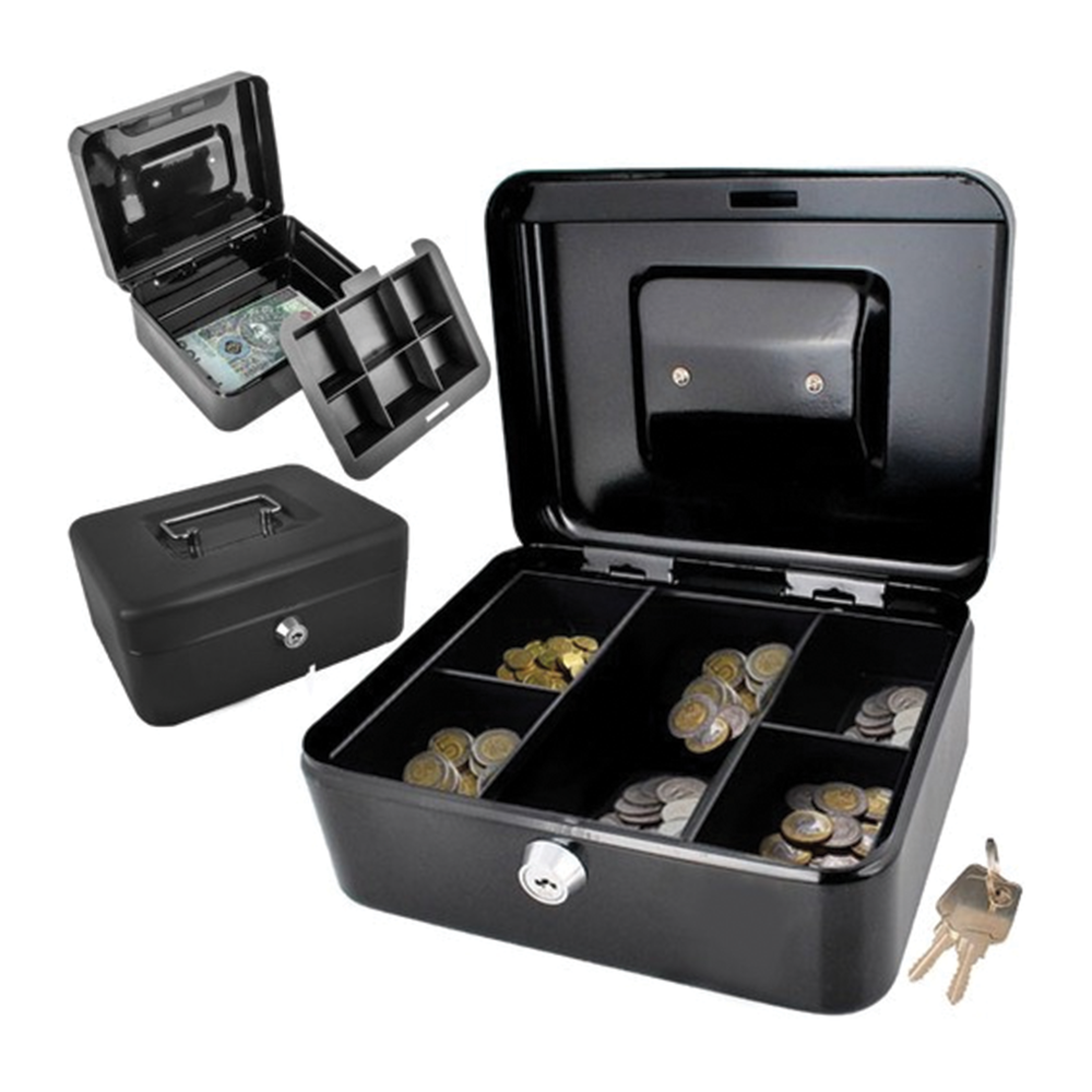Příruční pokladna s klíčkem je praktickým a bezpečným řešením pro uložení cenných předmětů, peněz a důležitých dokumentů. Silné stěny a masivní dveře chrání obsah před krádeží a zajišťují klid při používání doma, v kanceláři nebo v hotelovém pokoji. Pod horní vyjímatelnou vložkou na mince se nachází další přihrádka pro větší nebo důležitější věci. Díky praktické rukojeti je trezor snadno přenosný a umožňuje bezpečné stohování více kazet na sebe. Kovová konstrukce zvyšuje odolnost proti vniknutí.