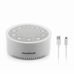 Vyberte požadovaný zvuk a režim světla. Nastavte časovač nebo nechte přístroj hrát nepřetržitě. Blikající režim světla můžete využít jako pomůcku pro zpomalení dechu a snazší usínání. Díky dobíjecí baterii lze přístroj používat doma i na cestách.