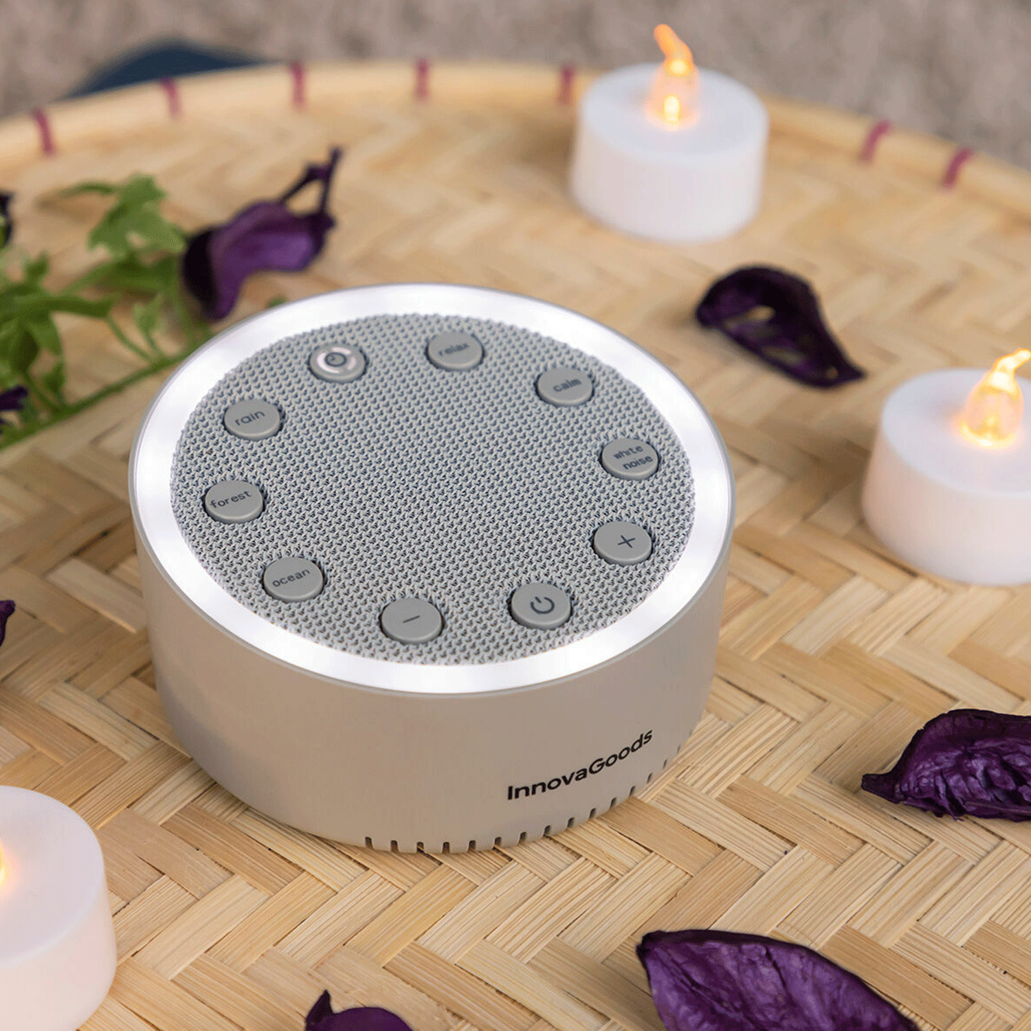 Vyberte požadovaný zvuk a režim světla. Nastavte časovač nebo nechte přístroj hrát nepřetržitě. Blikající režim světla můžete využít jako pomůcku pro zpomalení dechu a snazší usínání. Díky dobíjecí baterii lze přístroj používat doma i na cestách.