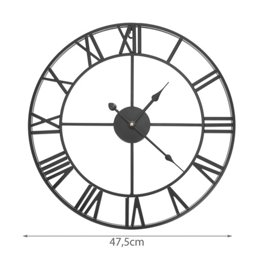 Retro nástěnné hodiny v černém 3D provedení s římskými číslicemi jsou výrazným a elegantním doplňkem každého interiéru. Díky velkému průměru 47,5 cm jsou dobře viditelné i z větší vzdálenosti a jejich minimalistický loftový design se hodí do moderních i klasických prostor. Velký průměr hodin zaručuje perfektní čitelnost a zároveň vytváří působivý dekorativní prvek na stěně.