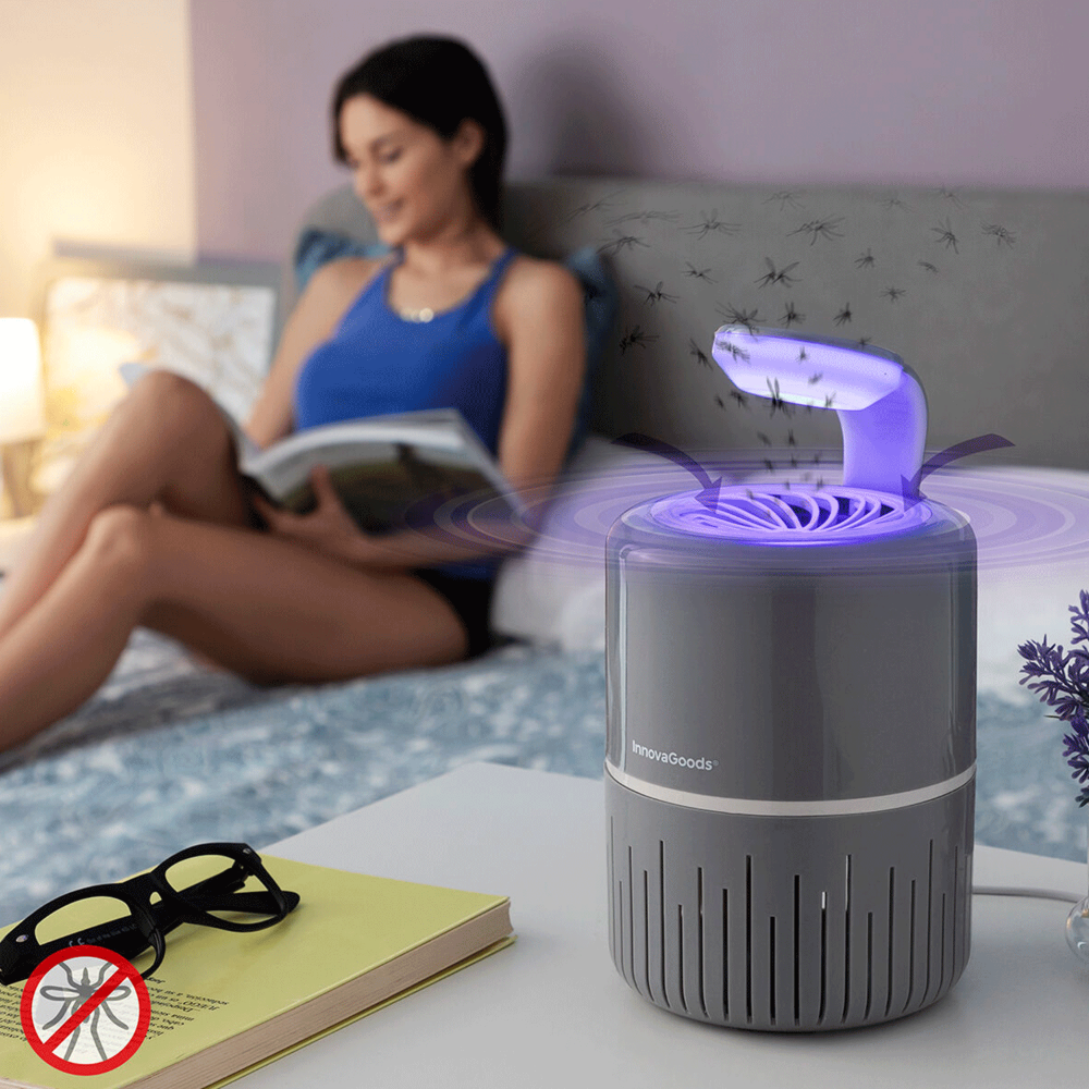 Účinná technologie s ventilátorem a UV světlem: Kombinace LED UV světla (1 W / 365 nm) a vnitřního ventilátoru zajišťuje efektivní přilákání a následné zachycení hmyzu do uzavřené nádoby. Nejvyšší účinnost dosahuje ve tmě a v uzavřených prostorách.