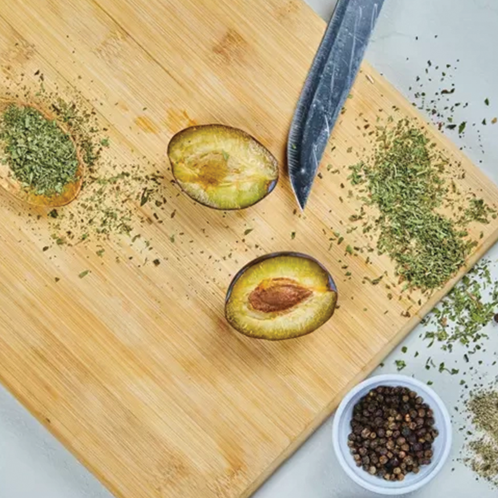 Sada 4 bambusových kuchyňských prkének je ideální pro každodenní použití. Díky čtyřem samostatným deskám můžete oddělit jednotlivé druhy potravin – ryby, maso, zeleninu a ovoce či chléb - a udržet tak vyšší úroveň hygieny při vaření. Prkénka jsou vyrobena z přírodního bambusu, který je odolný vůči vlhkosti, antibakteriální, lehký, ale pevný, bezpečný pro kontakt s potravinami, neabsorbuje pachy. Po použití je jednoduše otřete vlhkým hadříkem nebo opláchnete pod tekoucí vodou. Bambus rychle schne a nedeformuje se. (Není vhodné do myčky nádobí.) Součástí balení je stylový kovový stojan, který drží všechna prkénka přehledně uspořádaná a šetří místo na kuchyňské lince.
