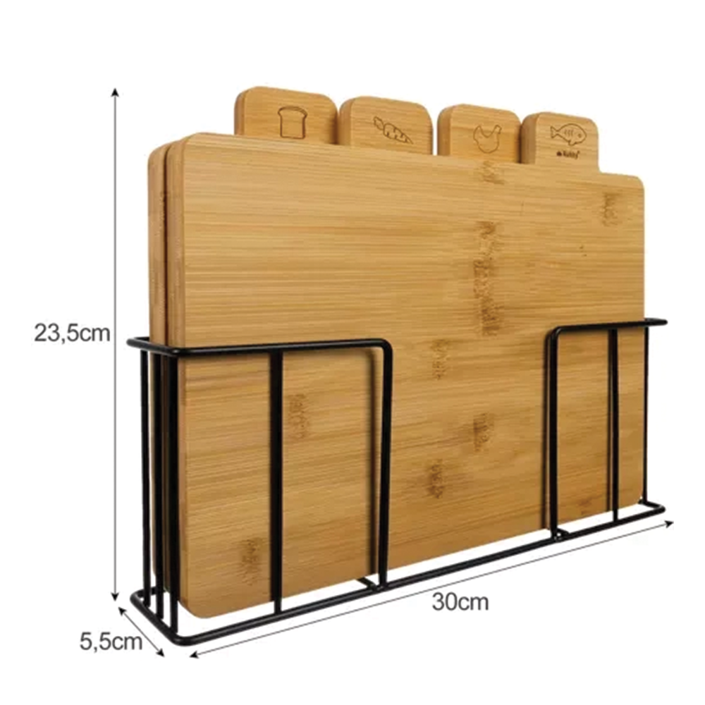 Sada 4 bambusových kuchyňských prkének se stojanem
