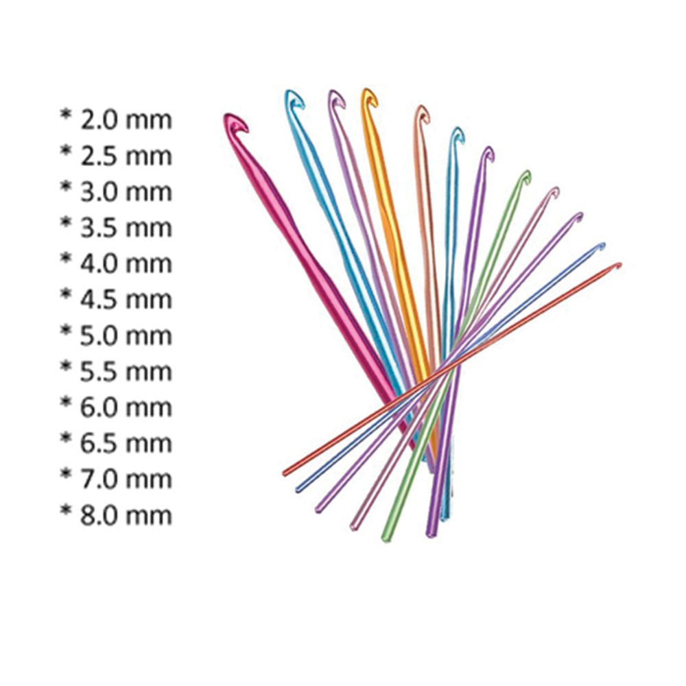 Velikosti háčků: 2 mm, 2,5 mm, 3 mm, 3,5 mm, 4 mm, 4,5 mm, 5 mm, 5,5 mm, 6 mm, 6,5 mm, 7 mm, 8 mm