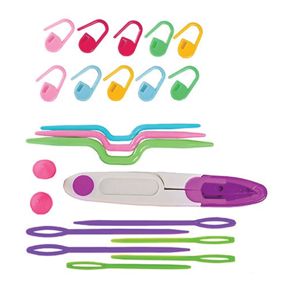 Kompletní sada 50 kusů: Vše potřebné pro háčkování na jednom místě.