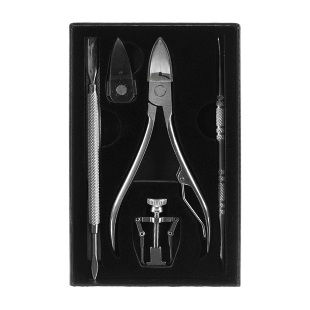 Praktická sada na zarostlé nehty představuje účinné řešení pro korekci bolestivě zarůstajících nehtových plotének na rukou i nohou. Univerzální korektor s nastavitelným šroubem umožňuje regulaci přítlaku podle potřeby a dvoustupňový držák se snadno přizpůsobí menším i větším nehtům. Součástí balení je šest profesionálních nástrojů včetně pilníku, řezačky, zvedáku a pomůcek pro péči o kůžičku.