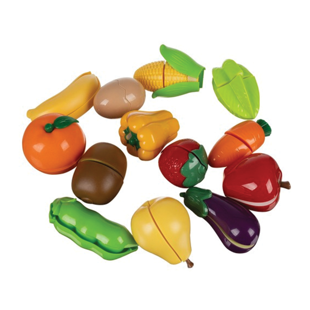 Zábavné krájení díky suchým zipům: Jednotlivé kousky ovoce a zeleniny jsou spojeny suchým zipem, který při „krájení“ bezpečným nožem vydává charakteristický zvuk. To dětem přináší autentický zážitek a zároveň skvěle trénuje jejich jemnou motoriku a koordinaci oko-ruka. Po rozkrojení lze dílky jednoduše spojit zpět, takže zábava při přípravě zdravých pokrmů nikdy nekončí.