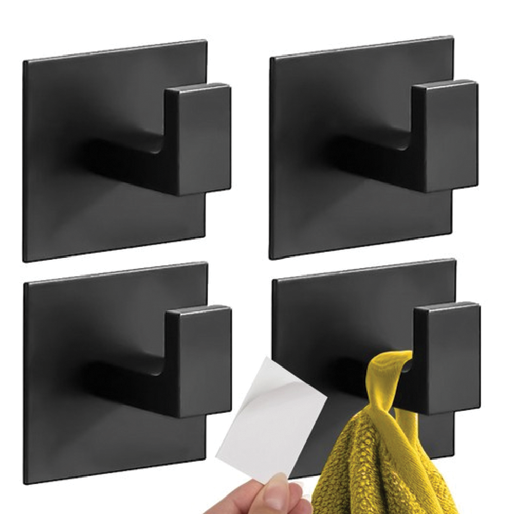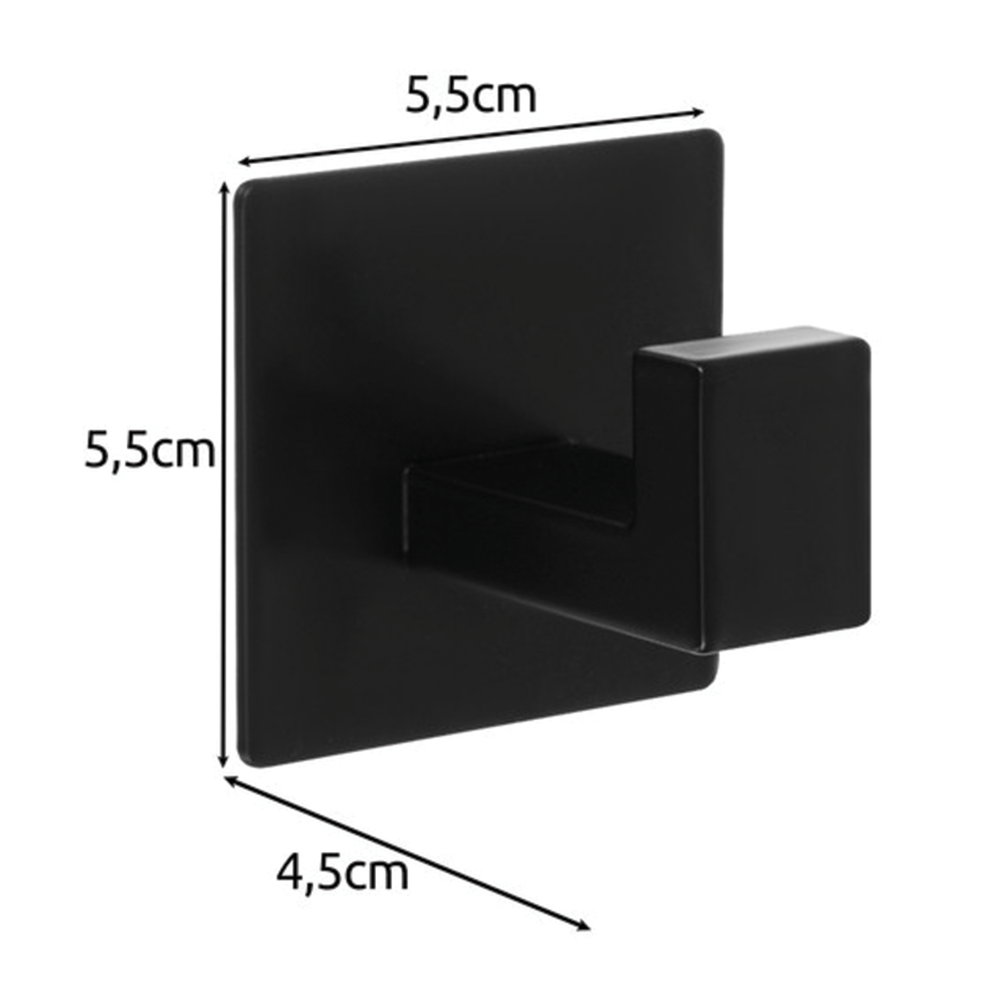 Samolepicí věšák hranatý, kov, černý, 4 ks