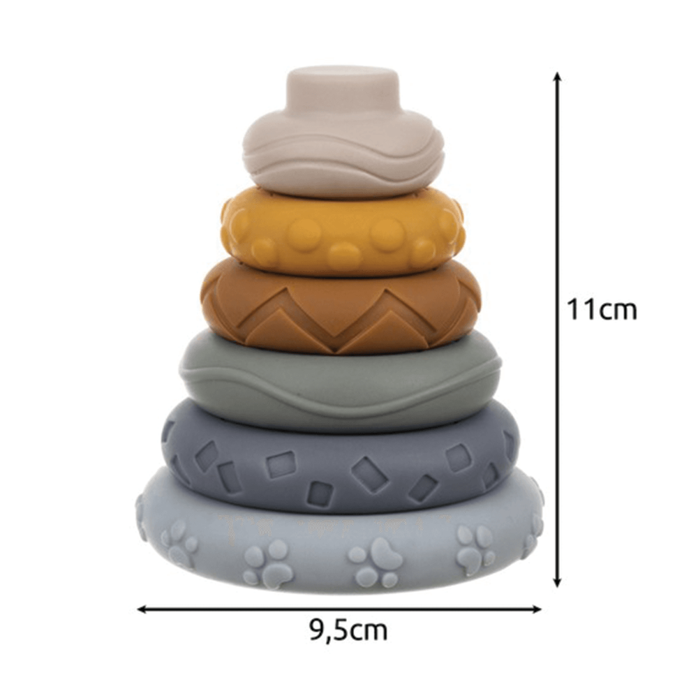 Senzorické měkké kostky a disky jsou vyrobeny z kvalitního, pružného PVC materiálu, který je bezpečný i pro nejmenší děti. Jsou bez škodlivých látek, příjemně měkké a vhodné nejen ke hraní, ale i jako kousátko při prořezávání zoubků. Jemné, uklidňující barvy jsou šetrné k dětskému zraku a podporují klidnou hru. Sada obsahuje 6 měkkých kostek, 6 senzorických disků a roztomilou koalu, kterou lze umístit na vrchol věže. Každý prvek vydává při zmáčknutí jemný pískavý zvuk, který stimuluje sluch. Povrchy jsou opatřeny různými reliéfy – písmeny, čísly, zvířátky a ovocem – což podporuje hmatové vnímání i první učení formou hry. Děti mohou kostky i disky skládat na sebe, třídit podle tvarů a vytvářet věže, čímž si rozvíjejí koordinaci oko–ruka, jemnou motoriku i logické myšlení. Hračky se navíc velmi snadno čistí, stačí je opláchnout vodou.
