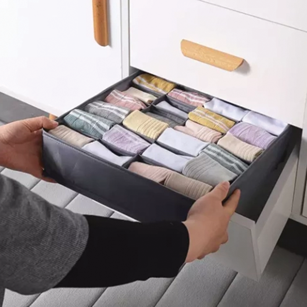 Skládací organizéry na spodní prádlo jsou ideálním řešením pro všechny, kdo chtějí udržet pořádek v šatníku. Sada obsahuje 4 organizéry různých velikostí a rozdělení přihrádek, takže snadno oddělíte ponožky, podprsenky, kalhotky, kravaty nebo další drobnosti. Vyrobené z prodyšné netkané textilie s vyztuženými boky, poskytují stabilitu a zároveň zabraňují hromadění vlhkosti.