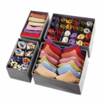Skládací organizéry na spodní prádlo RUHHY jsou ideálním řešením pro všechny, kdo chtějí udržet pořádek v šatníku. Sada obsahuje 4 organizéry různých velikostí a rozdělení přihrádek, takže snadno oddělíte ponožky, podprsenky, kalhotky, kravaty nebo další drobnosti. Vyrobené z prodyšné netkané textilie s vyztuženými boky, poskytují stabilitu a zároveň zabraňují hromadění vlhkosti. Díky skládací konstrukci nezabírají místo, když je zrovna nepoužíváte.
