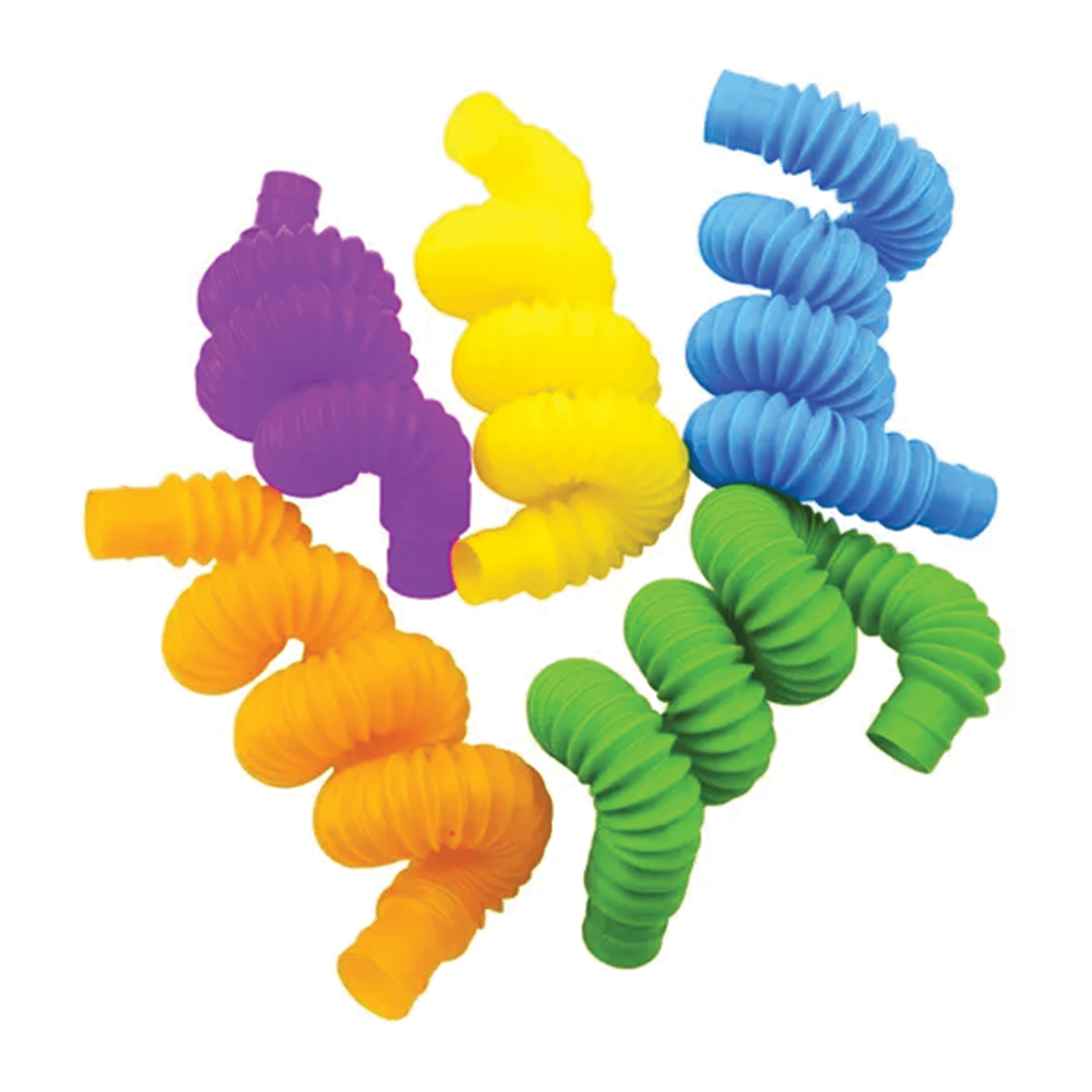 Natahovací antistresové trubičky tvoří zábavnou a smyslovou stavebnici, která nabízí široké možnosti hraní i relaxace. Jednotlivé trubky lze prodlužovat z délky 16,5 cm až na více než 50 cm a zároveň je možné je spojovat do jedné dlouhé trubice nebo různých tvarů, jako jsou kruhy, čtverce či jiné kreativní konstrukce. Sada je ideální pro uvolnění stresu, podporu soustředění a rozvoj jemné motoriky. Při manipulaci vydávají trubičky jemné zvuky, které poskytují sluchovou zpětnou vazbu a zvyšují smyslový zážitek ze hry. Díky pestrým barvám se hodí i jako vzdělávací pomůcka pro učení barev, počítání a jednoduchých tvarů.